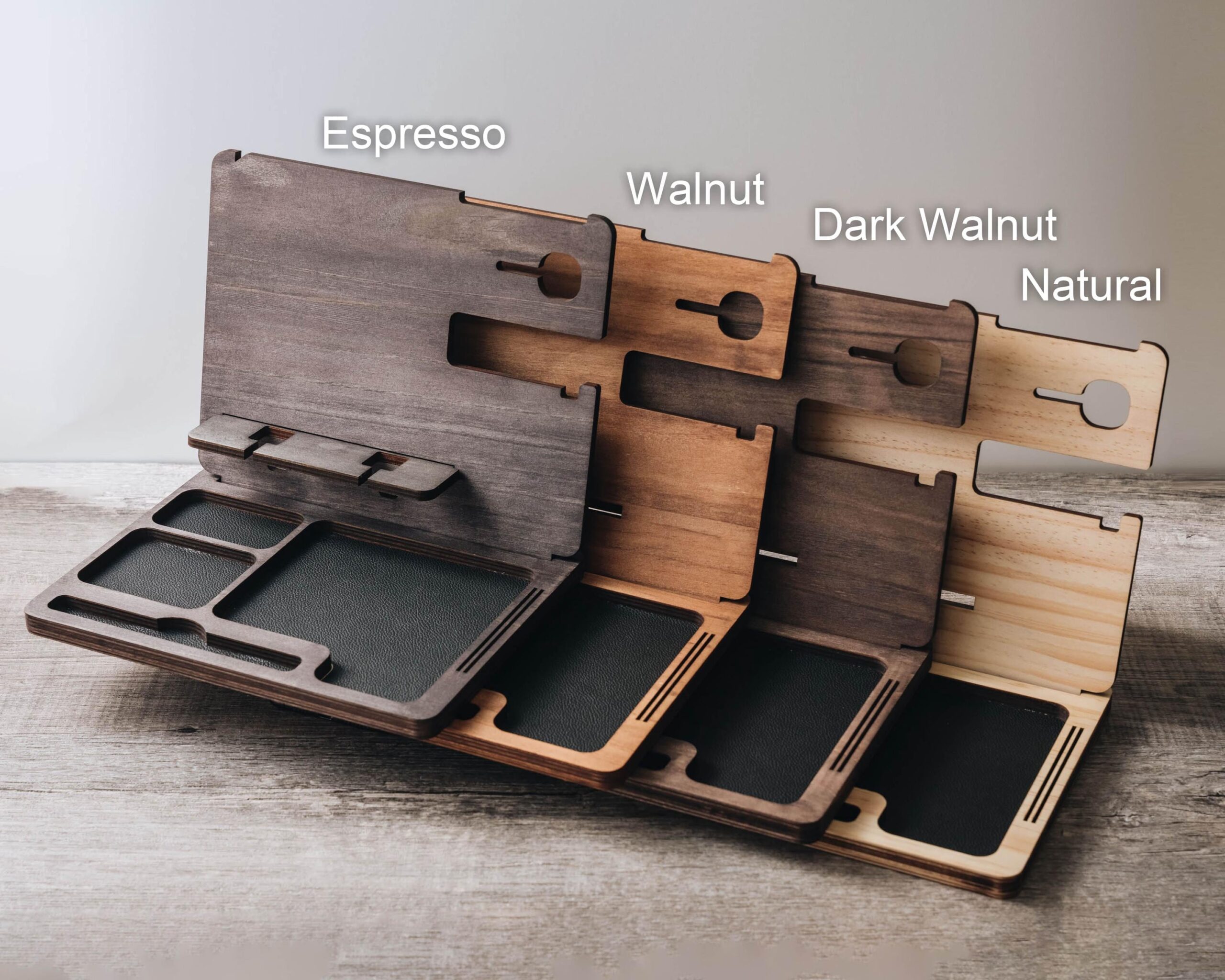 ● Our personalized docking station is one-of-a-kind desk organizer for managing all your daily accessories like Wallets, keys, watches, etc. Even your smartphone phone’s personal docking spot.