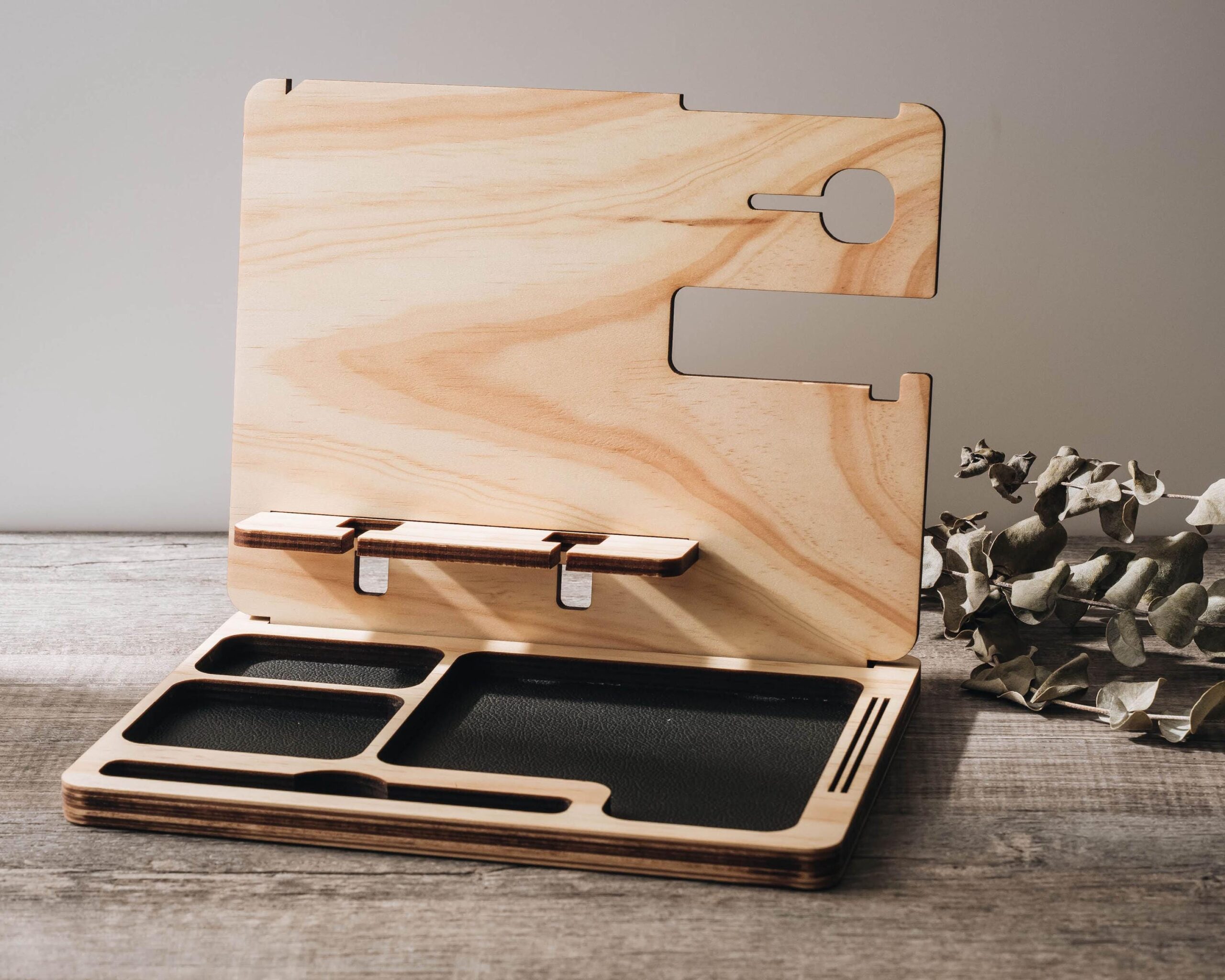 ● Our wood engrave feature allows you to personalize the docking station with name or initials. Makes it a perfect gift for a husband or yourself. You can surprise co-workers by giving them a Christmas gift or birthday gift.